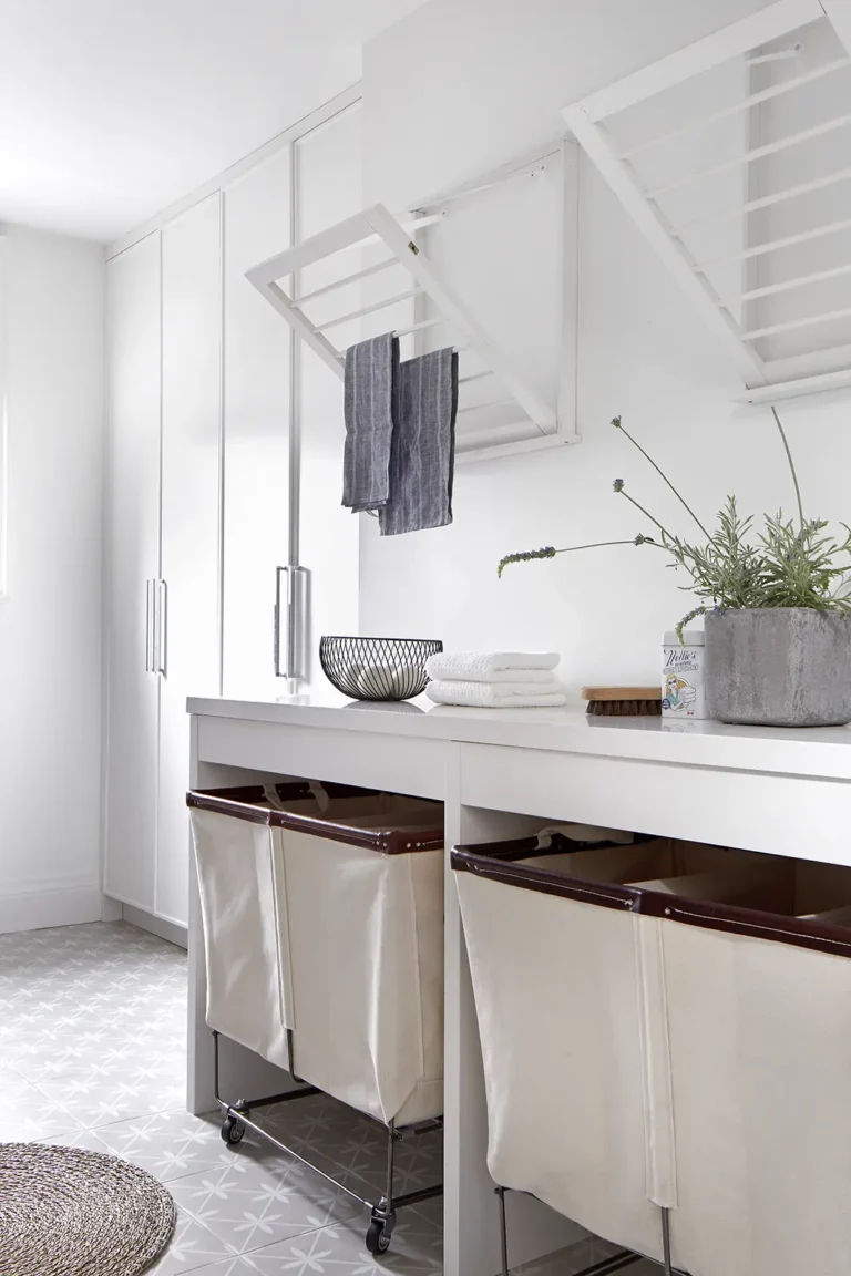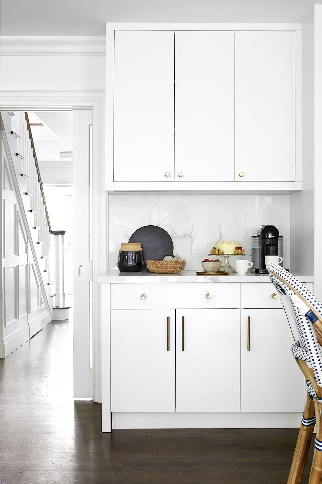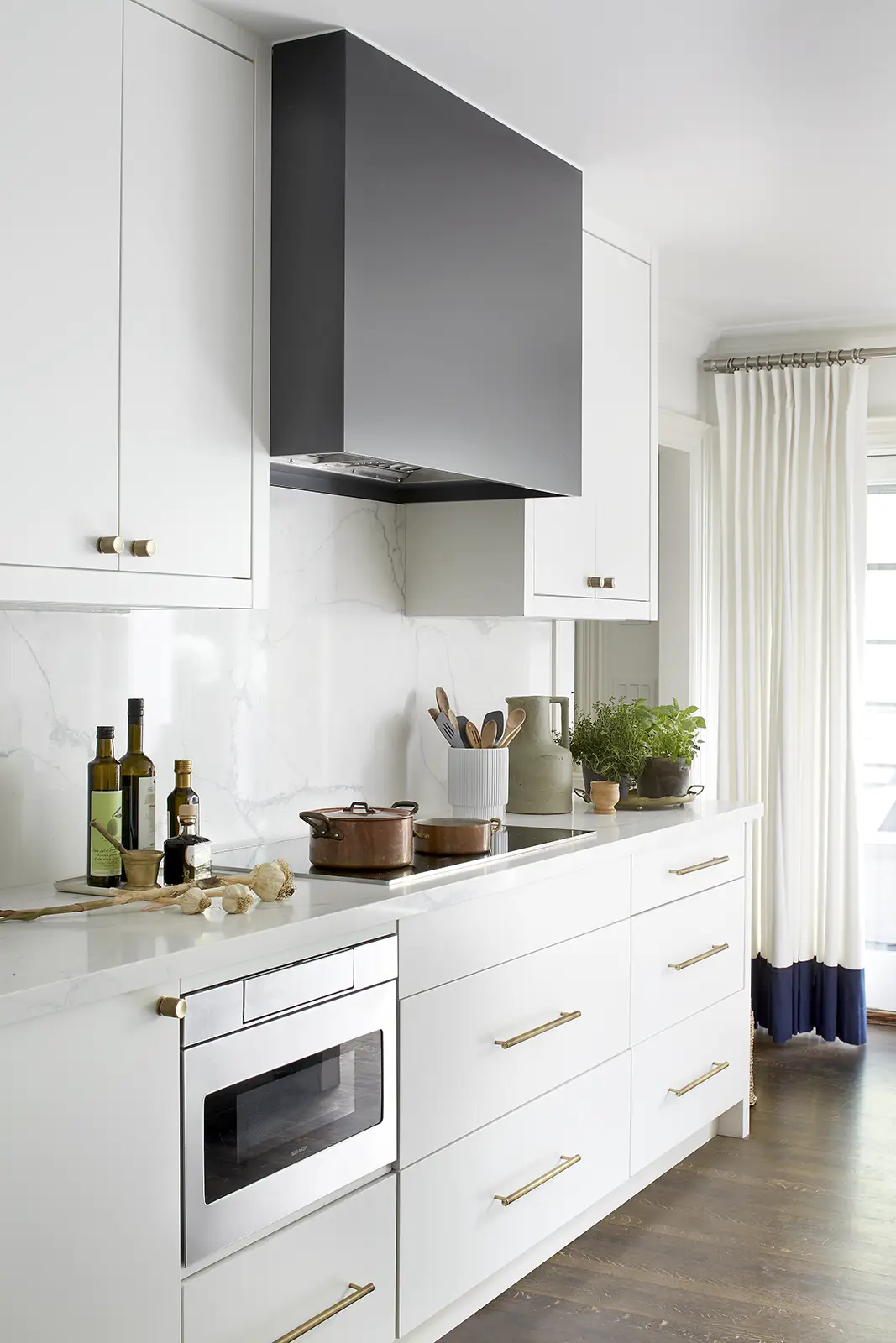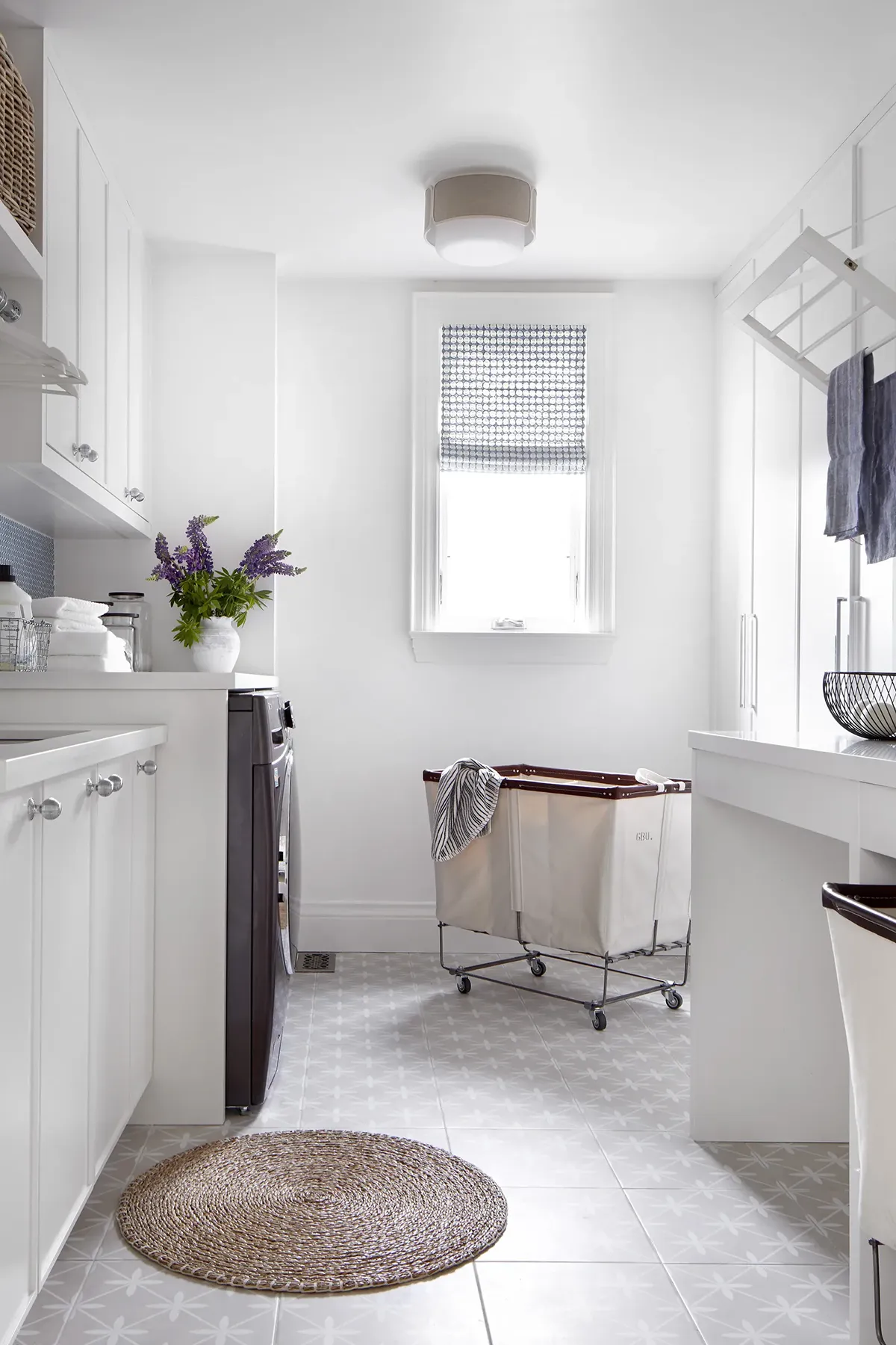 The homeowners were in need of a new, highly functional kitchen, two new bathrooms as well as a new upstairs laundry room with lots of built-in storage. We handled the renovation as well as the design package for all of these spaces in this busy family home.